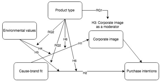 Literature about product symbolism suggests that the use of certain products or brands reflects personalities [58]. Those who hold high environmental values are more likely to identify themselves with companies dedicated to an environmental cause than are people who care less about the environment. Integrating the idea of product type, it is likely that the moderation of environmental values will not be significant for hedonic products, because the guilt generated from purchasing frivolous products can be experienced both by people with high and with low environmental values. In contrast, environmental values may moderate the effect of cause–brand fit on purchase intentions when it comes to utilitarian products. Because relevant research is scant, especially in relation to corporate image, the present study proposes the following research question:
