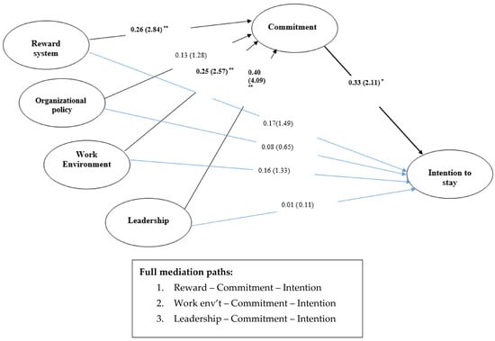 Sarpong, S.A.; Akom, M.S.; Kusi-Owusu, E.; Ofosua-Adjei, I.; Lee, Y. The Role of Commitment in the Relationship between Components of Organizational Culture and Intention to Stay. Sustainability 2021, 13, 5151. https://doi.org/10.3390/su13095151