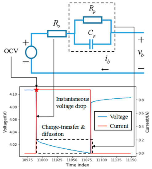 The dynamic characteristics of first-order RC ECM can be expressed by the following Equations (2) and (3):