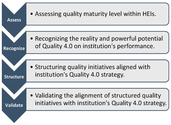 Implementing quality services in higher education institutions (HEIs) is key to distinguishing competitors as well as ensuring long-term sustainability [8]. A variety of quality tools, techniques, and models have been adopted to improve the quality of service and processes in higher education. These techniques include traditional quality methods such as Total Quality Management (TQM) [9], Quality Function Deployment (QFD) [10], and more recently Lean Six Sigma (LSS) [11]. The implementation of these tools and techniques has brought about many benefits to HEIs such as reducing costs, improving productivity, streamlining processes, and increasing customer satisfaction [12]. However, in order to remain effective, such traditional quality practices are expected to be transformed. According to Elshennawy [13], quality professionals must adapt to a new world of high technology and innovation. Thus, such professionals and their organizations are expected to enhance quality related practices and processes by benefiting from the fourth industrial revolution, Industry 4.0, which incorporates new technologically advanced tools, devices, media, and approaches suitable be adopted in both manufacturing and service sectors.