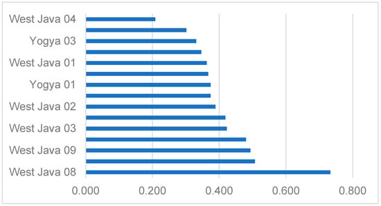 Figure 3 represents HEDM for the case study hospitals, and it shows the variance of HEDM from the most susceptible hospital (West Java 4) to the most resilient hospital (West Java 8). Figure 2 is also helpful for classifying the hospitals into different categories based on their resiliency against natural hazards and emergency situations.