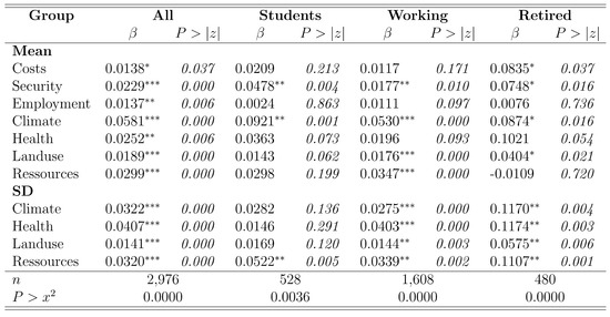 Although this full set of indicators is used for the comprehensive impact assessment of transformation strategies for the energy system, it is too comprehensive to be practical for discussions with stakeholders. Therefore, a sub-set of indicators was selected for the discrete choice experiment which additionally met the following criteria: