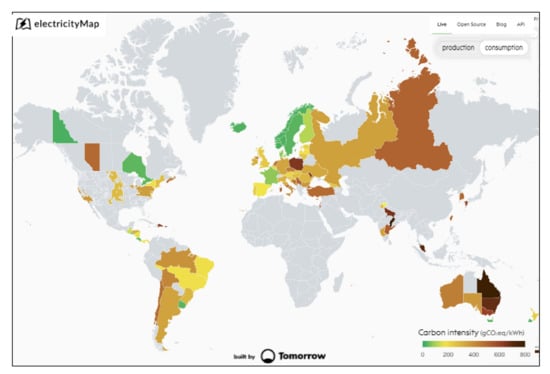 - ElectricityMap|Live CO2 Emissions of Electricity Consumption. Available online: https://www.electricitymap.org (accessed on 29 April 2021).