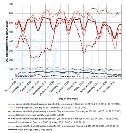 Carbon intensities of electricity generation in France and Germany in 2013. Source: [30] copyright of the authors.