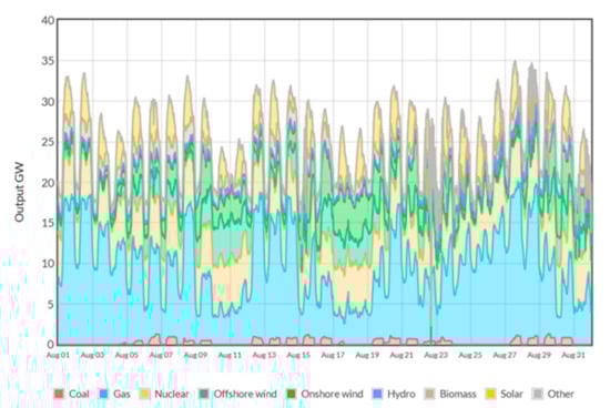 The source of electricity in the UK during August 2019. Source: Elexon [31]. Elexon is to be recognized as the source in any reproduction of this material.
