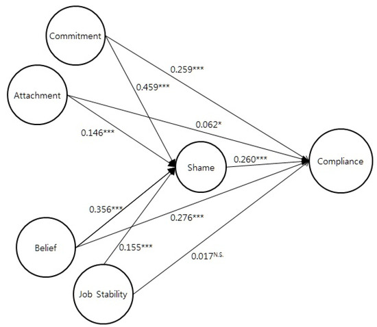 Although classical deterrence theory assumes that human beings are rational, contemporary deterrence theory has evolved to embrace conscience measures, such as shame, guilt and embarrassment [43]. These self-conscious emotions disapprove of one’s own deviant behavior and stigmatize oneself as a troublemaker, which inhibits antisocial or deviant behavior [43]. Compared to guilt, shame works as a more consistent self-stigma concept [28,32,44]. In Nye’s four types of social control, shame as conscience can be included as an internalized control based on autonomous patterns of conformity in the individual personality, conscience, or self-concept [20]. Shame is a significant self-conscious emotion and many criminology studies have found that shame can inhibit criminal behavior (e.g., [45]). Shame also plays a role as self-imposed punishment that, effectively, discourages employees from organizational criminal behavior.