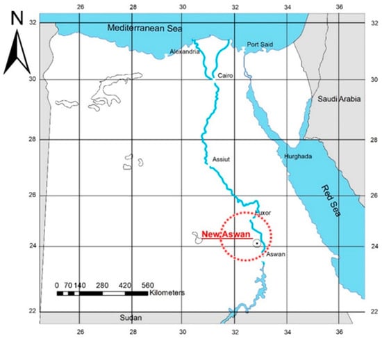 New Aswan city is located in the western part of the Nile Valley, 15 km away from the current city of Aswan. It is an example of a hot desert region in Egypt, with daytime temperatures exceeding 45 °C in summer, and dropping to below 15 °C in winter. Relative humidity is lowest in May and June (12%), while the highest values are recorded in December and January (36%, 34%, respectively) [31].