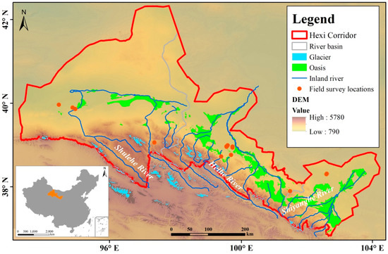 - Xie, Y.; Bie, Q.; Lu, H.; He, L. Spatio-Temporal Changes of Oases in the Hexi Corridor over the Past 30 Years. Sustainability 2018, 10, 4489. [Google Scholar] [CrossRef]