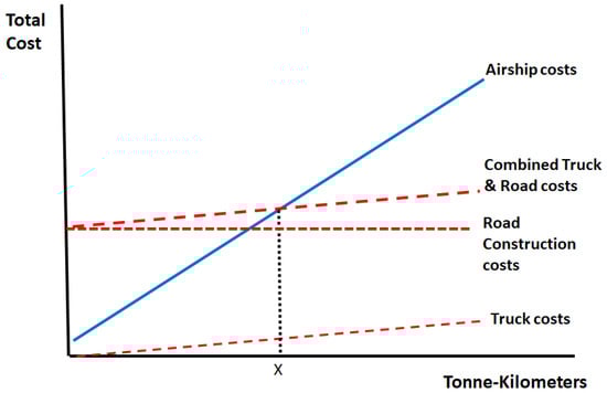 Conceptual Model of Combined Truck and Road Costs Versus Cargo airships serving Remote Mining Operations. Source: [41].