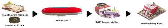 Conceptual model of airship transport from mining BART to transshipment BART.