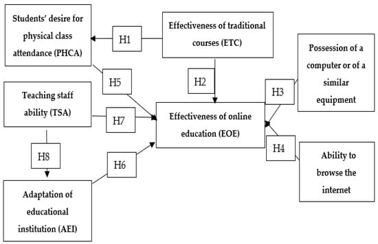 According to Kebritchi et al. [26], in order to support students in online education, prior training in technical skills is necessary for the efficient use of computers and the internet. Other factors are important as well, such as: the students’ perception and attitude towards the internet, their level of knowledge of English, and how the students manage their time. The success of online education is given by the dimensions suggested by Hung et al. [27]: learning motivation, self-directed learning, computer and internet quality, effectiveness of online communication, and student control.