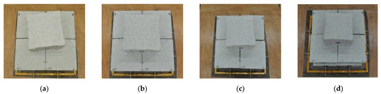 A two-axis shaking table as shown in Table 4 was used (Hyundai Engineering & Construction Co., Ltd., Gyeonggi-do, Korea); the maximum load was 50 kN, while the maximum vibration was 1 g and the maximum stroke was 75 mm.
