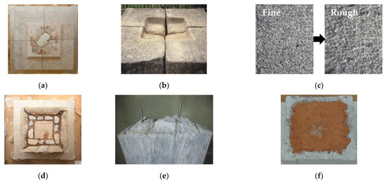 To manufacture the experimental object as shown in Figure 2, large rocks were cut to size and processed according to the shape and size of each member. The processed members were finished according to the roughness of the three-story stone pagoda at the Cheollyongsa temple site, and the size and condition were reviewed. Finally, the scale model was assembled.