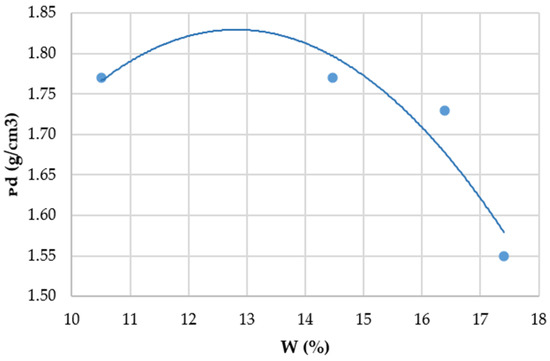Figure 7 shows the variation in dry density as a function of water content. The ideal water content for making this mixture was 13%.