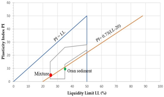 Figure 8 shows CASAGRANDE the diagram of plasticity proposed by the standard [51]. A strong swelling behavior characterized the sediments of the port of Oran, which were considered low-plastic because they were easy to dry and showed good results in the manufacture of blocks.