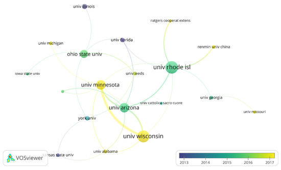 Organizational co-authorship map in financial behavior.