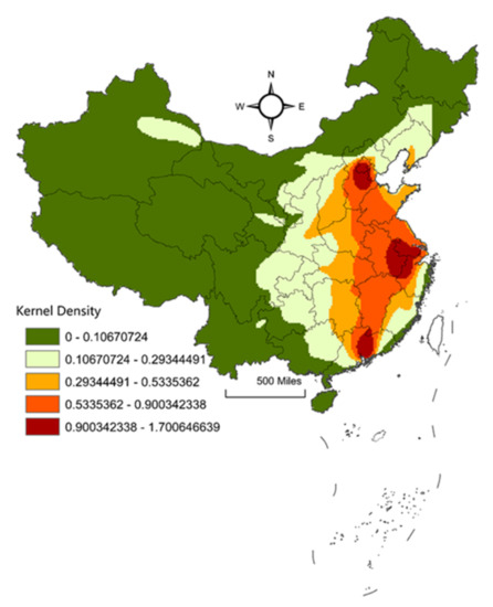 Kernel density of urban networks in China.