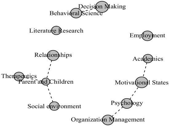 Additionally, it is worth noting that “Literature Research”, the second most-often occurring topic in the corpus, is separated from other topics. A topic such as “Literature Research” not having a correlation with other topics shows that the research on management literature or on the management and organization theories itself, rather than their application, is not multi-directional and multidimensional. In addition, topics such as “Employment” not having a correlation with other topics is quite surprising. It is noteworthy to see the correlation between “Academics”, “Motivation”, “Psychology”, and “Organization Management”. Similarly, topics “Parent and Child”, “Therapeutics”, “Social Environment”, and “Relationships” are correlated. Furthermore, one more group of correlation between “Behavioral Science” and “Decision Making” is as expected due to the closeness of the topics in general.