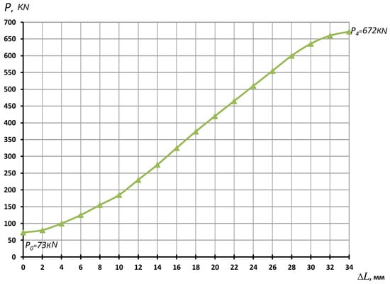 The calculated curve of the deformation force change, depending on the value of upsetting during the formation of the semi-axle shank blank of the KamAZ truck.