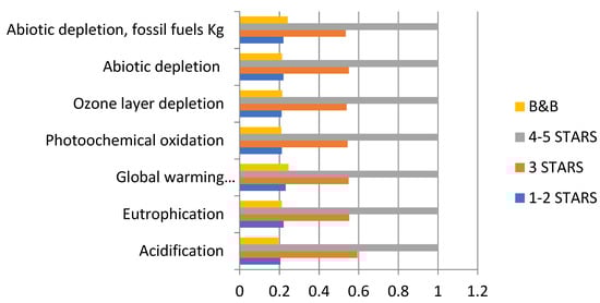 Figure 4. LCA related to tourism accommodation for the case study.