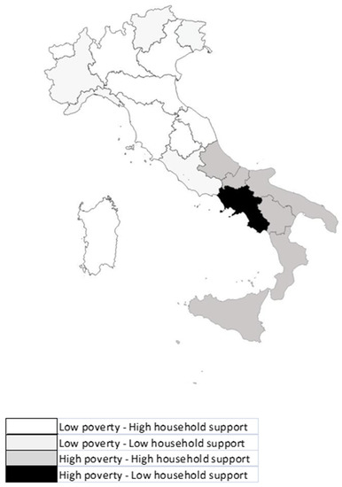 Italian regions’ groups with respect to the household support.