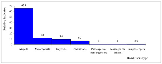 Relative indicator of the occurrence of an injured victim in a road accident for individual road users. Source: Own work based on data presented in SRAC database [3].
