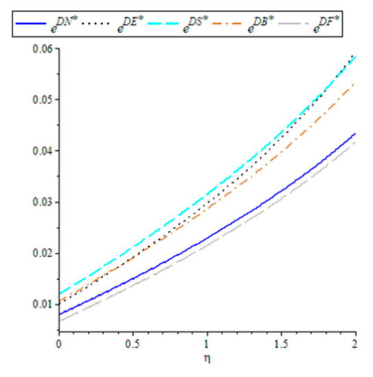 Taking Equations (41)–(45), with respect to finding the first-order derivative, we can obtain: