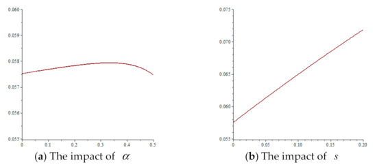 By conducting a sensitivity analysis of the optimal decision and optimal profit of each member of the supply chain regarding the government sales subsidy s, the impact of the government consumption subsidy policy on the decision and profit of the supply chain members can be studied, as shown in Proposition 7 and Proposition 8 below.