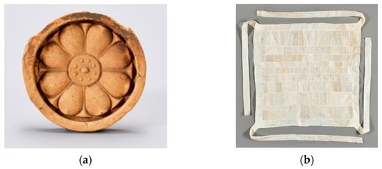Lotus design roofing tile (a)—source: The National Museum of Korea (https://www.museum.go.kr/site/main/relic/search/view?relicId=116730, accessed on 21 June 2021) and Ramie Jogakbo (b)—source: The National Museum of Korea (https://www.museum.go.kr/site/main/relic/search/view?relicId=205909, accessed on 21 June 2021).