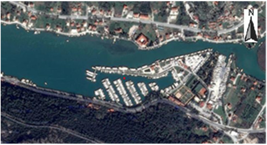 Satellite image of ACI Marina Dubrovnik (the red dot shows the sampling point).