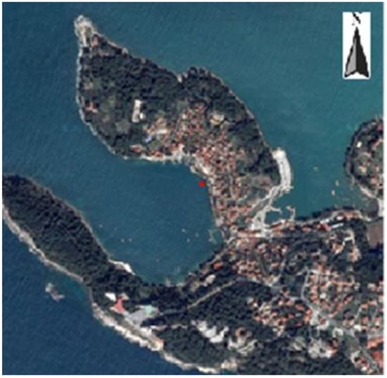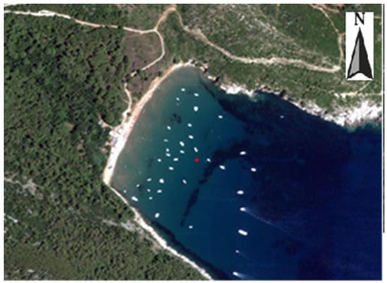Satellite photo of the Lopud anchorage on the island of Lopud (the red dot in the photograph is the sampling site).