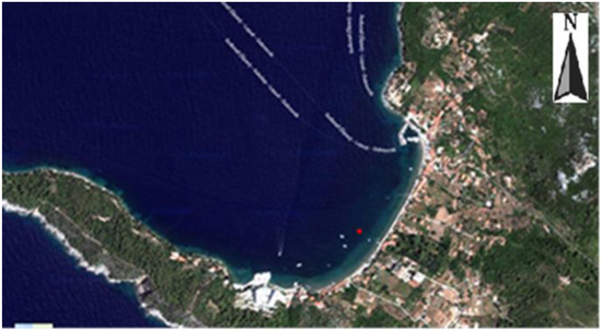 Šunj Bay is an uninhabited bay in the south of Lopud Island on the side leeward to the prevailing wind. The beach has fine sand stretches along the entire bay, which is why it is a favourite bathing destination for guests of Lopud, boat owners from Dubrovnik, and other boating tourists. During the swimming season, there can be more than 50 boats anchored in front of the beach during the day, but at night, only a few sailboats or yachts remain. The sampling point was in the middle of the bay closer to the beach, between anchored boats, about 50 m away from the beach shown in Figure 11.