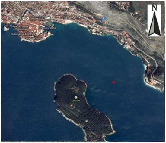 Satellite photo of the anchorage of Dubrovnik old town near the island of Lokrum (the red dot in the photo is the sampling site).