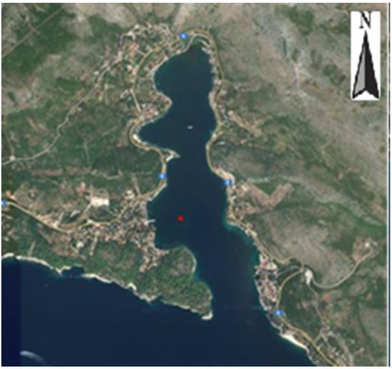 Satellite image of the anchorage in front of Zaton (the red dot in the photo is the sampling point).