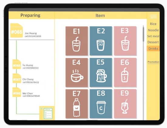 In 2016, the sustainable development goals (SDGs) replaced the Millennium Development Goals to become the future achievement blueprint of the United Nations by 2030. There is also a similar concept called Service 4.0, which has been developed recently. The Singapore government has proposed the Service 4.0 strategy for the next generation. The strategy intends to combine value-added and productive service processes with technology for meeting the changing needs of customers [1]. With the development of catering businesses and the growth of business chains, companies will develop a competitive advantage through a business model in differentiated catering product markets. Mobile catering is a great way to expand existing restaurant sales or break into the catering industry. Mobile technology plays a major role in the innovation of the service industry [2]. Moreover, an integrated system to assist transparent and responsive decision-making for management can support organizations with innovation and sustainability in order to consolidate the competitive advantage [3]. Kumar et al. [4] developed a food delivery app (FDA) for evoking emotions that predicts the continued usage intentions for FDAs, especially during the mobility limitations of the COVID-19 pandemic. Wang et al. [5] developed and validated a mobile catering app success model based on the e-commerce system success model.