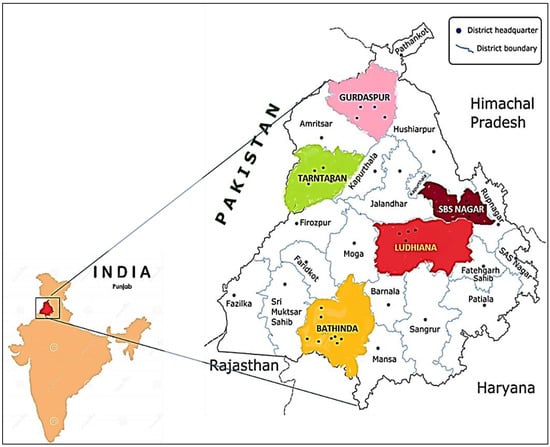 Locations for soil sampling (Bathinda, Ludhiana, SBS Nagar, Tarantarn and Gurdaspur).
