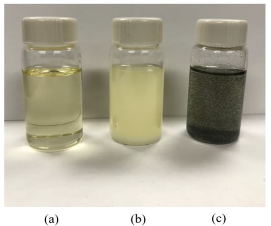 Image of lubricant samples for (a) pure canola oil, (b) canola oil incorporated with hBN, and (c) canola oil incorporated with GNP.