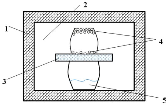 Schematic diagram of high-temperature filtration operation; 1. Muffle furnace; 2. Furnace; 3. Honeycomb filter; 4. Filter slags; 5. Filtrate.