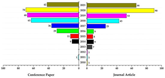 Productivity comparison of journal articles and conference papers (2010–2021).