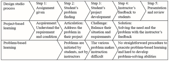 Procedure of the design studio and comparison of superimposing project-based learning criteria and problem-based learning issues.
