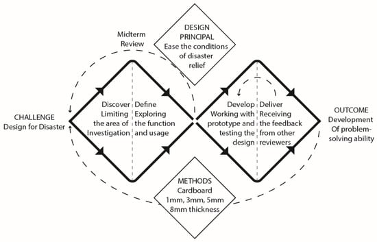 The inclusion of sustainability in higher education is the essential component in SDG4 (Quality Education), which defines educational policy and practice at all levels through teaching and research. Higher education is expected to deliver knowledge and innovation to meet societal, economic, and environmental challenges through academic staff and students [15]. Even though the United Nations Educational, Scientific, and Cultural Organization (UNESCO) recommends teaching STEM-related subjects in the 21st century for sustainable development, STEM at the university level receives minimal attention. Due to the complexity of the STEM education system, the activities are conducted through project-based, inquiry-based, and problem-based learning. However, these activities require frameworks, which challenge instructors in preparing materials [8]. Design-based tasks play a significant role in STEM education by encouraging students’ critical thinking and problem-solving abilities [16]. While STEM successfully employs design, design education currently involves subjective procedures and lacks the framework for adopting the critical-thinking process [17]. Therefore, design education has the opportunity to develop students’ cognitive skills by reflecting on STEM learning experiences. This study articulates the framework for design education by investigating problem-based and project-based learning and the double-diamond diagram for innovation.