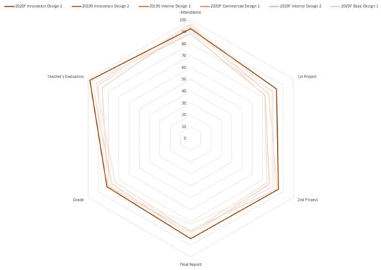 Comparison of six criteria of 2020F Innovation Design I with other NTNU design classes in the 2019 Spring semester–2020 Fall semester.