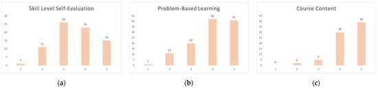 (a) Skill-level self-evaluation chart. (b) Problem-based learning chart. (c) Course content chart.