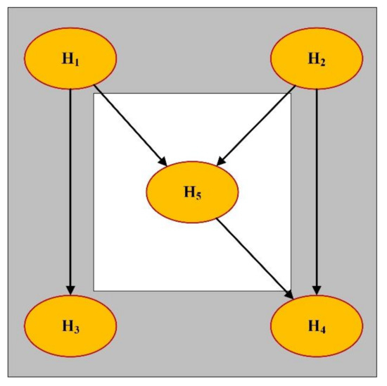 The conditional probability tables reflect the aforementioned joint likelihood density function, developing the probabilistic BN composition. The BN graphical arrangement necessity possesses an acyclic character. In particular, a BN follows a directed acyclic graph formation. To be precise, there must not be any edge redirecting, including for any Hi and H. The edges reveal the mathematical dependencies among the nodes; however, the edge direction may not inevitably indicate a causality association. Between a pair of nodes linked together by an edge, the preceding and following nodes are named parent and child, subsequently. To build the Bayesian networks, this study utilized the Markov blanket, which finds all the variables in the network that are essential to forecast the target variable. A simple structure of BN based on directed acyclic graph formation is shown in Figure 3.