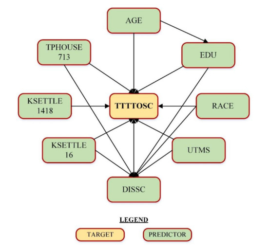 Generally, travel behavior datasets contain various parameters, and each parameter may have diverse classes. Besides, when new knowledge is accessible or needed, these datasets may remain constantly updated. Moreover, it is very common that travel behavior datasets are incomplete or possess missing values. Several studies acknowledged that the BN technique can deal with variables with various classes and undersampling data efficiently. Additionally, this technique can handle data that are deficient, fallacious, or dubious [75,76,77]. According to Tareeq and Inamura [78], the BN technique was considered proper to learn changeable behaviors (including the TTT under review) because it can effectively improve its network following the data specified or inserted into it.