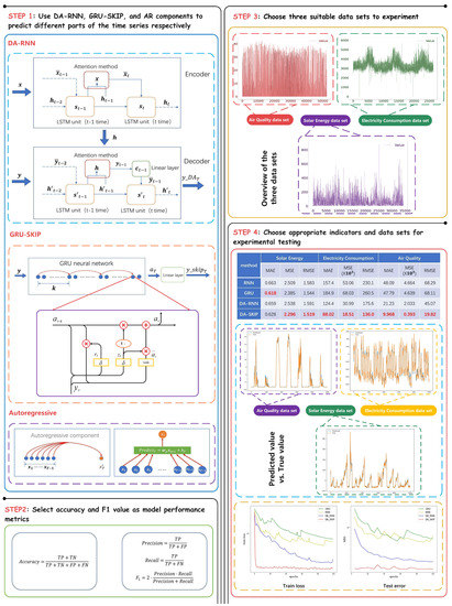 DA-SKIP inherits DA-RNN’s excellent processing capabilities for multivariate data and long-distance dependence. At the same time, the introduction of GRU-SKIP components enhances the model’s processing capabilities for periodic sequences, the use of autoregressive components enhances the model’s processing capabilities for autocorrelation sequences. After that, excellent performance was seen on the three datasets of Solar Energy, Electricity Consumption and Air Quality.