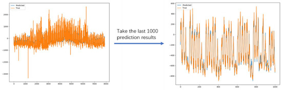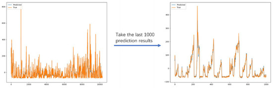 The above experimental results show that the introduction of task segmentation and integrated model ideas brings stronger long-distance prediction capabilities and periodic prediction capabilities to the model. It illustrates the advantages of DA-SKIP in dealing with periodic time series over the comparison models. The final prediction results of the DA-skip model on the three datasets are shown in Figure 7, Figure 8 and Figure 9.