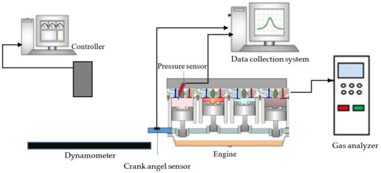 A four-stroke, four-cylinder, and turbocharged DI diesel engine (OM314) was utilized in this study. A schematic diagram of the test setup is shown in Figure 1. The main characteristics of the engine are presented in Table 1. A Schenck W400 electric eddy current dynamometer was used to measure torque and speed of engine. For the measurement of in-cylinder pressure, a Kistler pressure transducer of the type 6053BB120 was employed. The tests were performed at two fuel IPs (200 and 215 bar) and different biodiesel–diesel blends (B0, B20, B40, and B100) at a speed of 1600 rpm. The biodiesel fuel employed in the engine was obtained from waste cooking oil (the oil extracted from soybean) by esterification reaction. Table 2 illustrates the main characteristics of diesel and biodiesel fuels.
