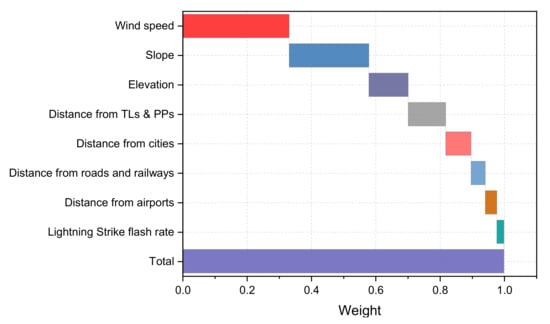 Priority weights of the eight-evaluation factor for site selection of WT.