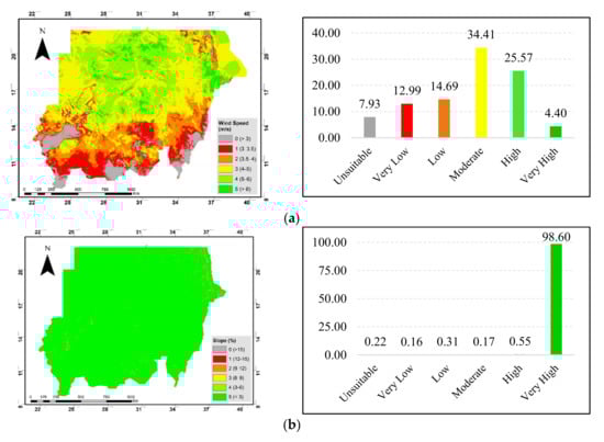The slope is a critical technical index for wind farms construction. The accessibility of maintenance and installation equipment is affected by the high slope and increases the installation cost. Hence, selecting flat areas and locations with lower slopes for wind farm installation is highly-recommended. In this work, the areas with slopes greater than 15% are excluded from the final suitability map [30]. The Sudanese digital elevation model (DEM) data has been used for the slope factor in this study.